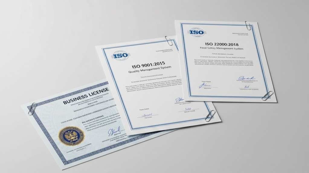 Key verification documents include the supplier's Business License to prove they are a legal entity, and their system certifications like ISO 9001 (Quality) and ISO 22000 (Food Safety). These documents provide objective, third-party proof of the company's legitimacy and professionalism.