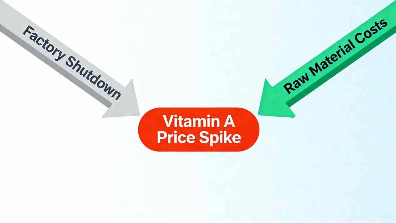Vitamin A price changes are caused by two main factors: sudden supply shocks from shutdowns at one of the few global factories, and fluctuations in the cost of key raw materials like citral, which are tied to the petrochemical market.