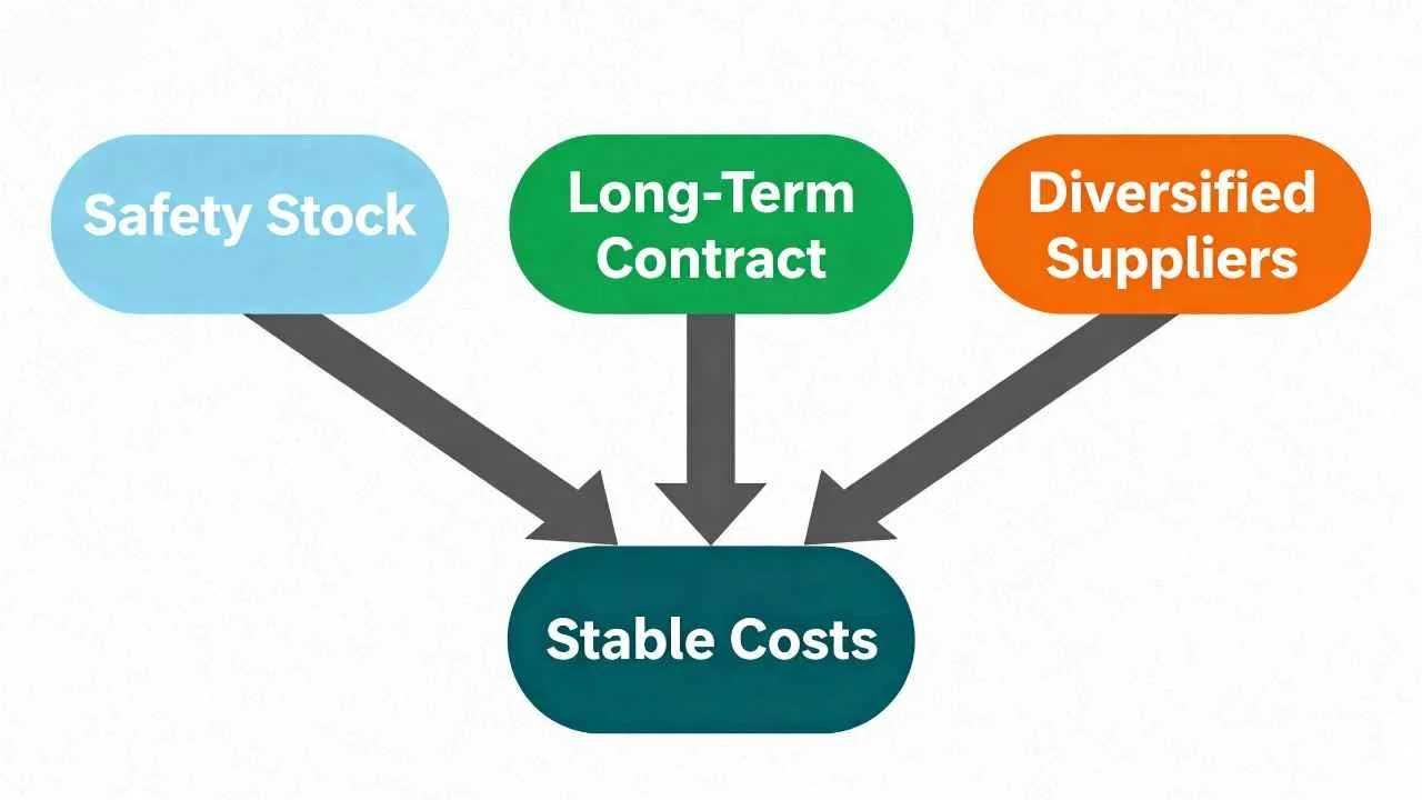 In a volatile market, you must be strategic. First, maintain a safety stock of 2-3 months' inventory; this is your insurance policy against sudden price spikes. Second, for predictable needs, sign a long-term contract to lock in your price for 6-12 months, which provides complete budget certainty. Third, ensure you are qualified with at least two diversified suppliers to provide a backup source and improve your negotiating position.