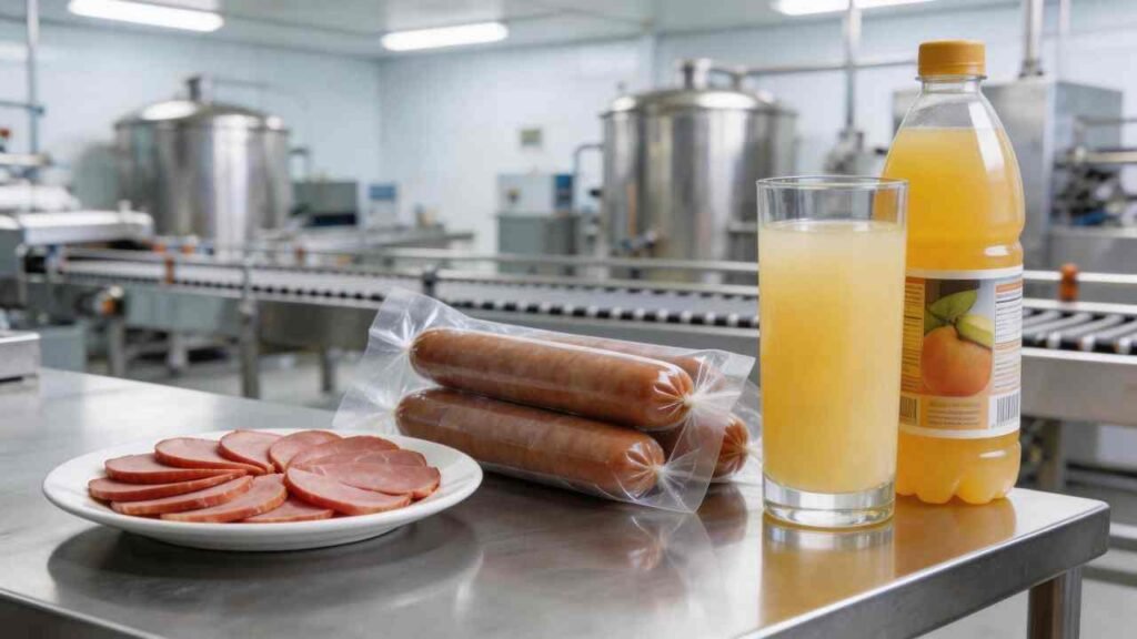 Cured meats like sausages, ham, and bacon benefit most by maintaining their pink color. It is also vital for canned fruits, vegetables, and beverages like juice or beer. These products use it to prevent browning and flavor changes caused by oxygen exposure.