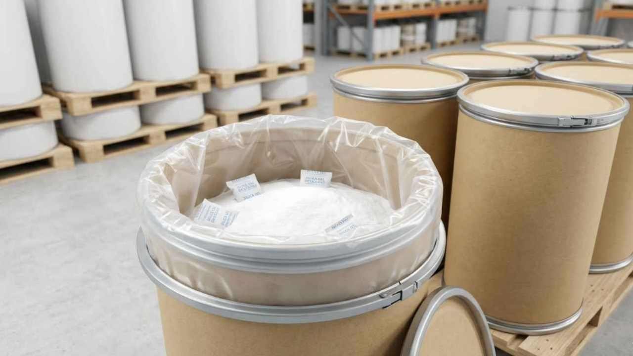 Packaging protects Vitamin B5 from moisture using double-layer heat-sealed PE liners. Some exporters add silica desiccant bags inside the drum. This creates an airtight environment that prevents humidity from entering, ensuring the powder remains free-flowing and active for manufacturing.