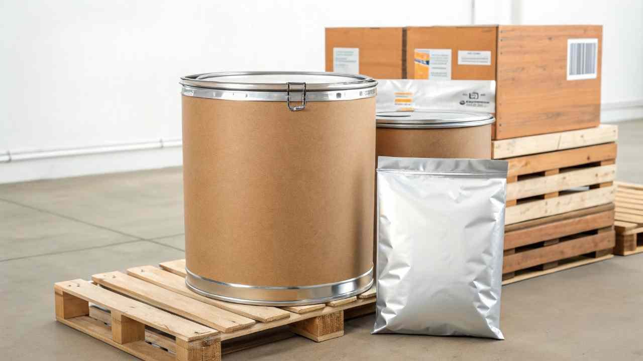 Primary materials include high-density fiberboard for drums, double-layer food-grade PE for liners, and metal locking rings. For high-sensitivity orders, aluminum foil bags are used. Pallets are made of heat-treated wood or plastic to meet international trade regulations like ISPM 15.