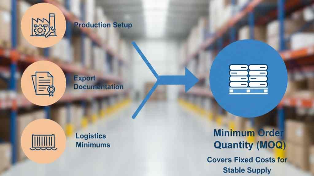 Suppliers set MOQs to cover the high fixed costs of production, packaging, and export documentation. A minimum quantity is required to make a single production batch and an international shipment economically viable, ensuring the business can operate profitably.